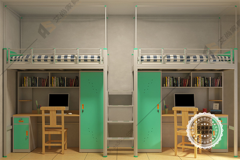 大學生宿舍一般是4人到六人間宿舍,中學生普遍是6人間到8人間宿舍,當然也有一些好的中學有四人間宿舍,艾尚家具作為生產研發學生宿舍床的廠家,下面這款床專為高等院校研發設計的,合適于四人間。