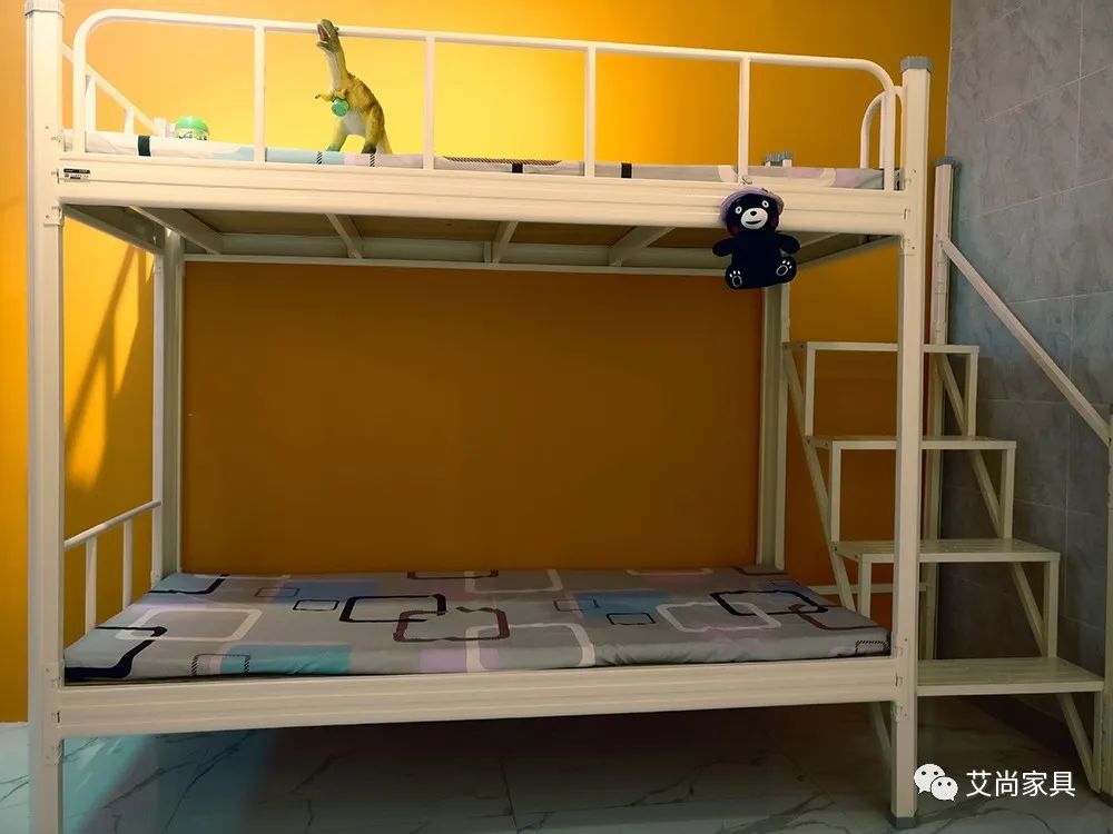 4、另外在安裝的時候也是要注意的,安裝不穩固很容易引發聲響影響睡眠還有可能導致安全事故,所以安裝一定要固定,仔細檢查螺絲是否到位,推薦大家選購艾尚家具金屬的鐵床,我們全部采用優質冷軋鋼為原材料,個性化獨特的設計理念,現代化的焊接工藝,在耐用的前提下更加美觀,加上全自動噴粉工藝做到0甲醛、無異味,外觀時尚,而且更耐腐蝕,實在耐用。