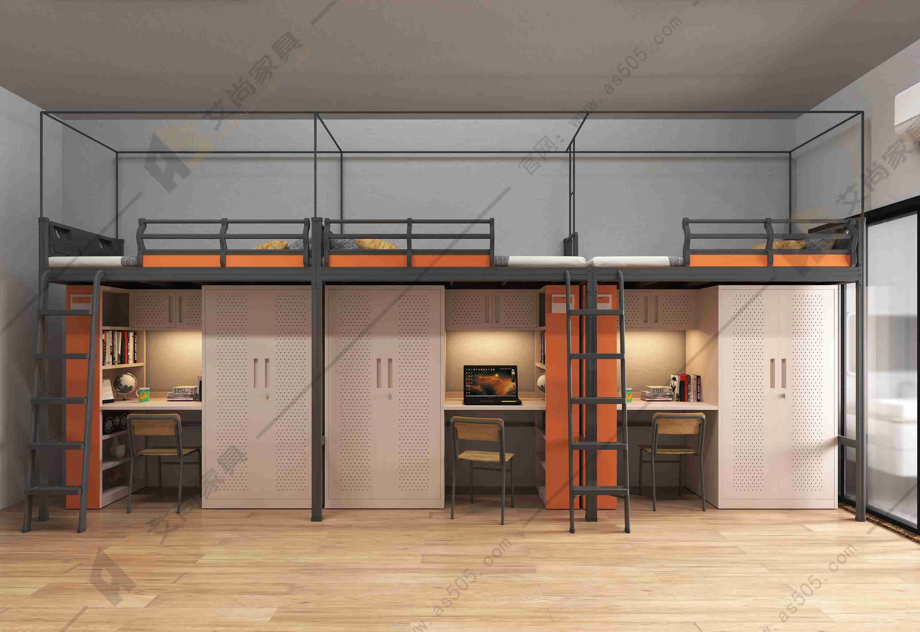 2、設計方面:結構要穩定,銜接處要檢查是否結實,使用的時候要定期檢查一下避免松動。艾尚學生公寓床為卡扣式連接,重力下壓越睡越穩固。
