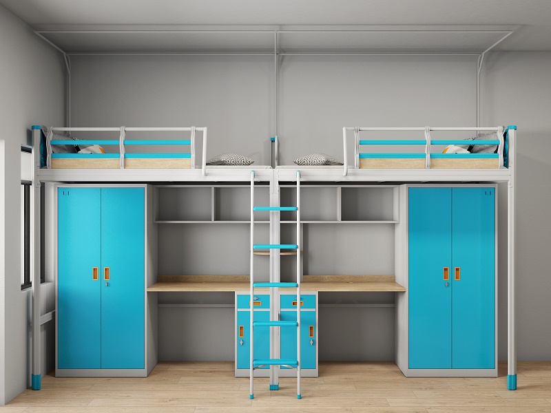 暑期過后,大一新學生就會步入大學校園,開始大學的宿舍生活。大學宿舍公寓床所擁有的床、桌、椅的組合可以緩和同學一天的疲勞,讓每個學生都有一個快樂的心情,大容量儲物柜更實用,使日常用品整理更容易。一瞬間,整個宿舍干凈、整潔、美麗。