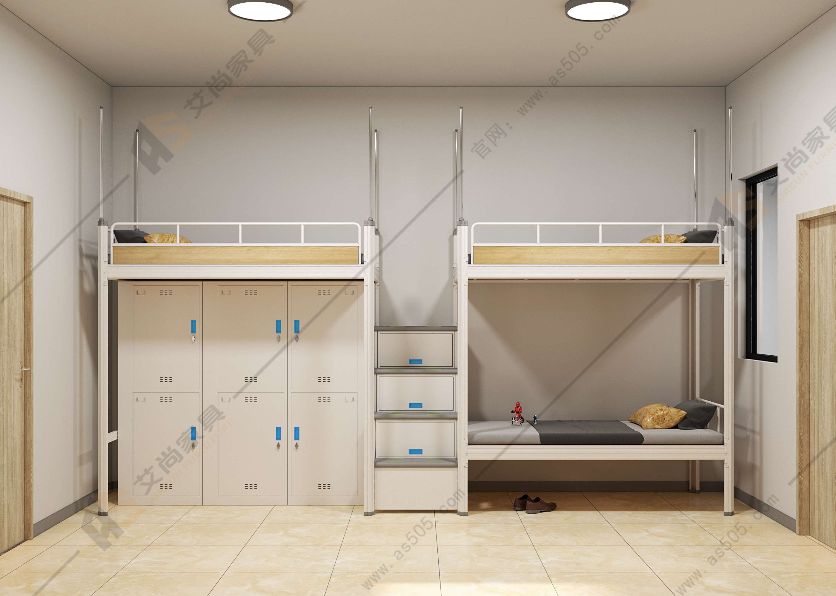 如果宿舍家具的尺寸規格和類型需要特殊定制和匹配,您可以來艾尚家具咨詢。我們免費為客戶提供鐵鋪床的款式和尺寸設計。我們還可以為您提供宿舍的整體配置方案和3D效果圖。