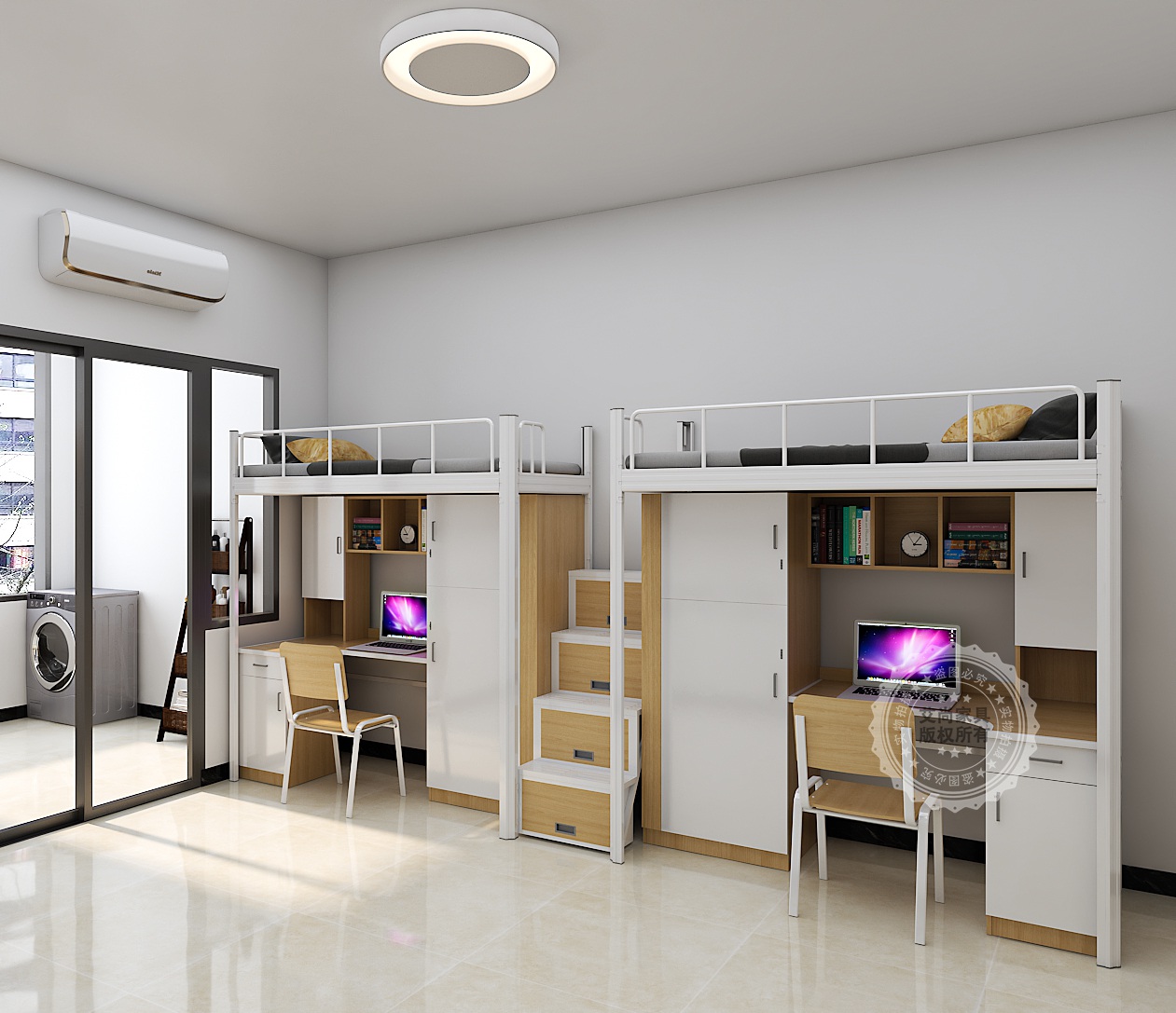 功能擴(kuò)展:可集成書桌、衣柜、行李架等實(shí)用功能,學(xué)習(xí)收納兩不誤。