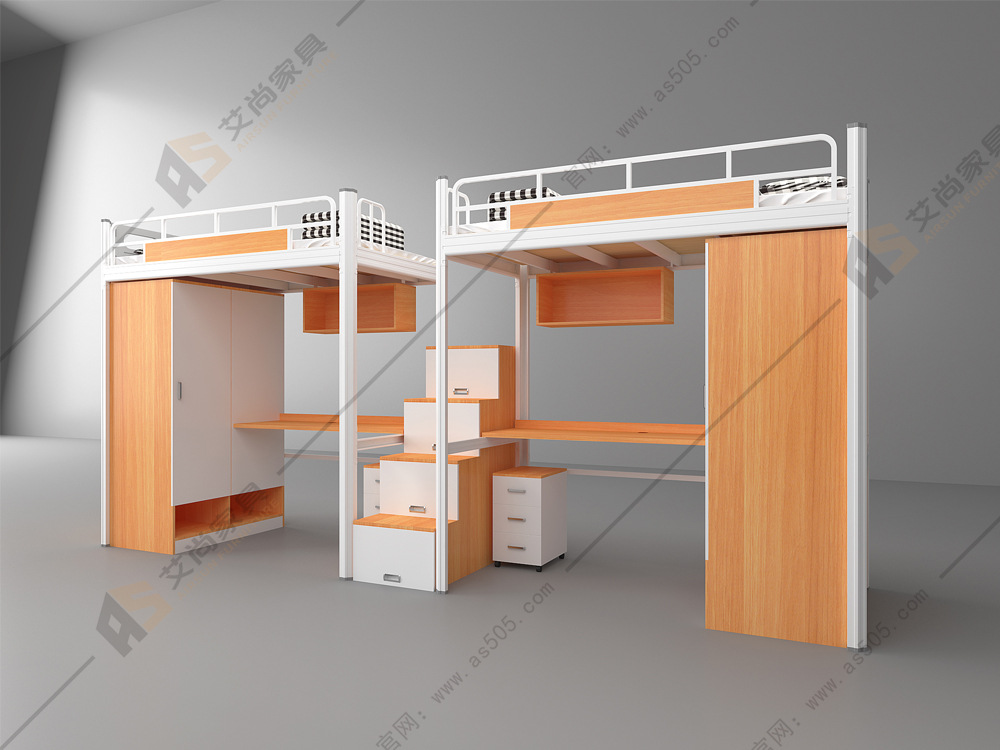 那么說說艾尚家具公寓床的制作過程,客戶能更加的了解我們,公寓床原材料使用冷軋鋼板,材料厚度為1.2mm,立柱是中空異形材,不同于普通的圓柱或方柱,中空異形材是半圓弧式不規(guī)則形狀的,無棱角不會(huì)造成磕傷,內(nèi)外皆可噴塑,防止立柱內(nèi)部生銹,使用期限大大增加。每根立柱都有防滑塑膠套,既可以讓床更穩(wěn)固也可以防止立柱因過多的浸水造成銹跡!床架采用卡式連接,倒扣式無螺絲,越壓越緊,床提承重500kg,多重都不用擔(dān)心床架會(huì)散。還有全圍式護(hù)欄,比一般宿舍床的護(hù)欄高出30mm,怎么睡也不會(huì)掉下床。踏板式防滑樓梯,附有凹凸防滑紋,防止腳滑上床時(shí)不慎滑倒,更有貼心扶手設(shè)計(jì),上下床更放心!