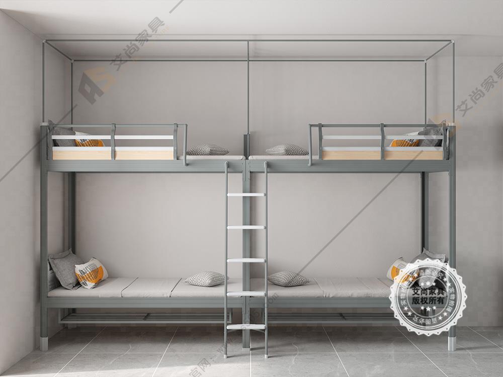 產品介紹: 艾尚家具學生上下鋪鐵床外觀上高端大氣,并且安全舒適。學生上下鋪鐵床采用環保0甲醛烤漆,無論悶熱潮濕都恍然如新。 做工設計上,學生上下鋪鐵床采用卡口式連接,這種連接的優點在于承重性強,穩固性好,上床時非常平穩,不易搖晃,安全舒適,可以適應各種宿舍。