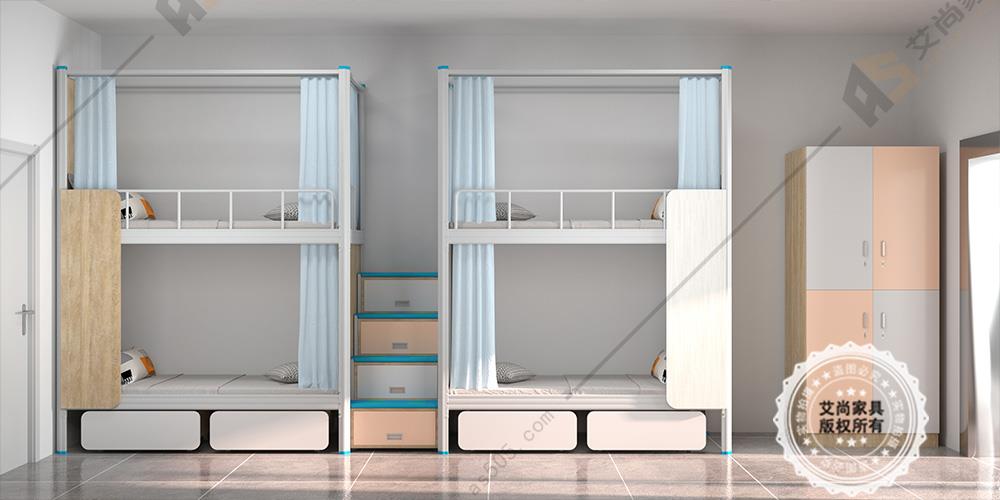 產品介紹: 艾尚家具學校宿舍上下鋪床外觀上高端大氣,并且安全舒適。學校宿舍上下鋪床采用環保0甲醛烤漆,無論悶熱潮濕都恍然如新。 做工設計上,學校宿舍上下鋪床采用卡口式連接,這種連接的優點在于承重性強,穩固性好,上床時非常平穩,不易搖晃,安全舒適,可以適應各種宿舍。