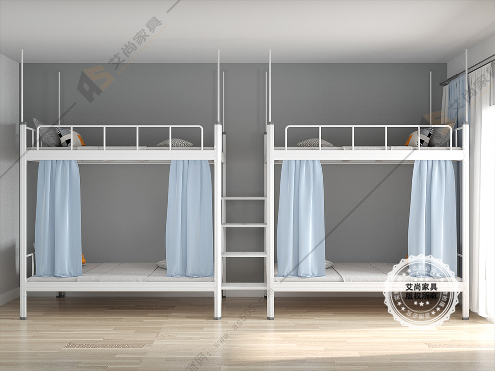 產品介紹: 艾尚家具員工宿舍上下鐵床外觀上高端大氣,并且安全舒適。員工宿舍上下鐵床采用環保0甲醛烤漆,無論悶熱潮濕都恍然如新。 做工設計上,員工宿舍上下鐵床采用卡口式連接,這種連接的優點在于承重性強,穩固性好,上床時非常平穩,不易搖晃,安全舒適,可以適應各種宿舍。