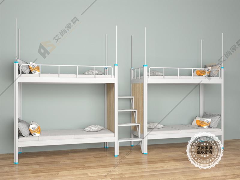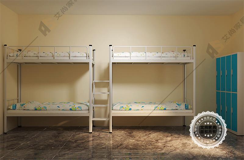 產品介紹: 艾尚家具雙層床上下鋪外觀上高端大氣,并且安全舒適。雙層床上下鋪采用環保0甲醛烤漆,無論悶熱潮濕都恍然如新。 做工設計上,雙層床上下鋪采用卡口式連接,這種連接的優點在于承重性強,穩固性好,上床時非常平穩,不易搖晃,安全舒適,可以適應各種宿舍。
