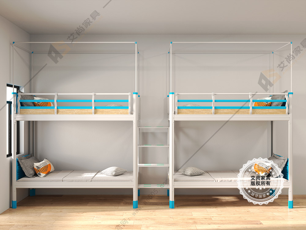 產品介紹: 艾尚家具卡位式雙層鐵床外觀上高端大氣,并且安全舒適。卡位式雙層鐵床采用環保0甲醛烤漆,無論悶熱潮濕都恍然如新。 做工設計上,卡位式雙層鐵床采用卡口式連接,這種連接的優點在于承重性強,穩固性好,上床時非常平穩,不易搖晃,安全舒適,可以適應各種宿舍。
